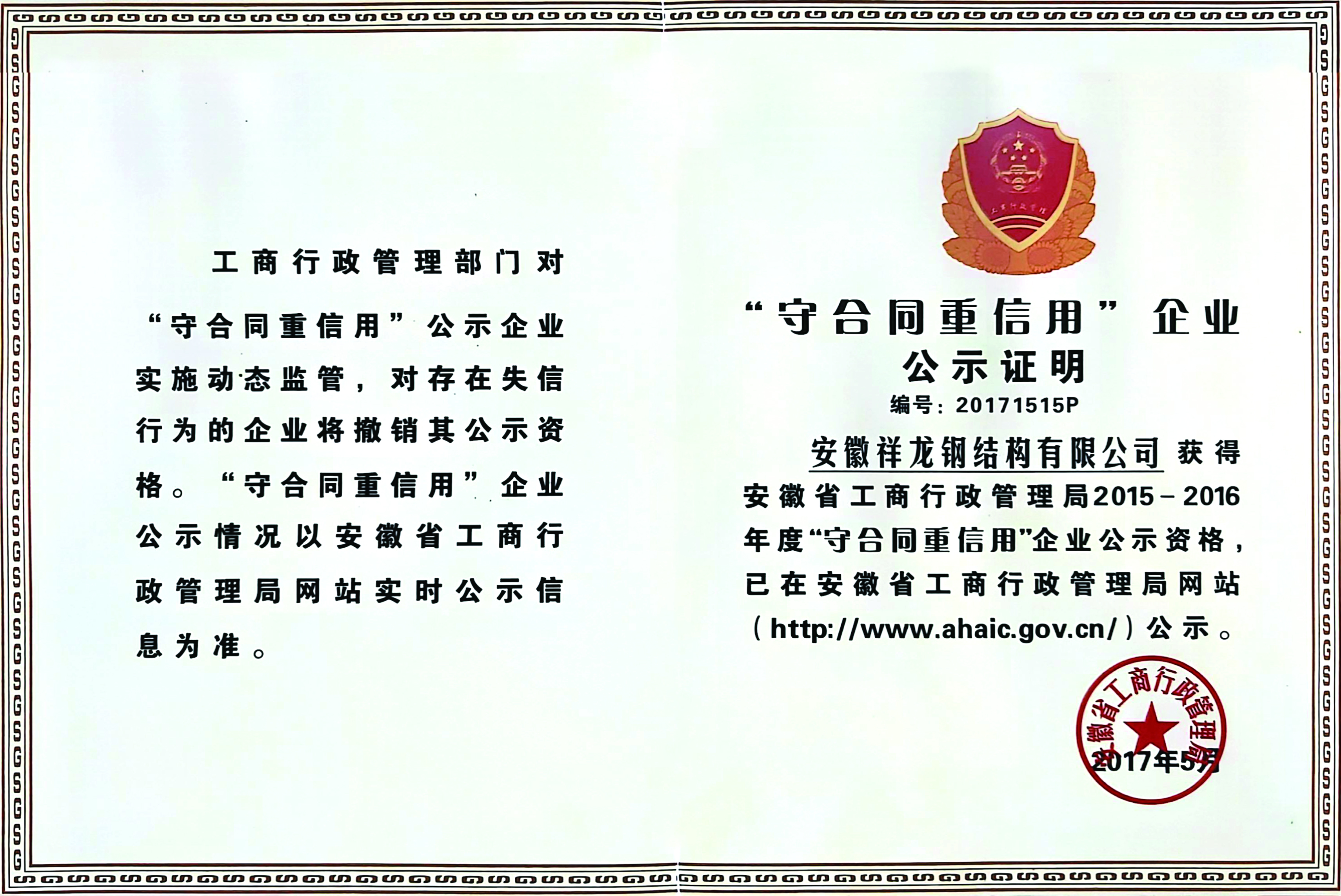 守合同重信用企業公示證書